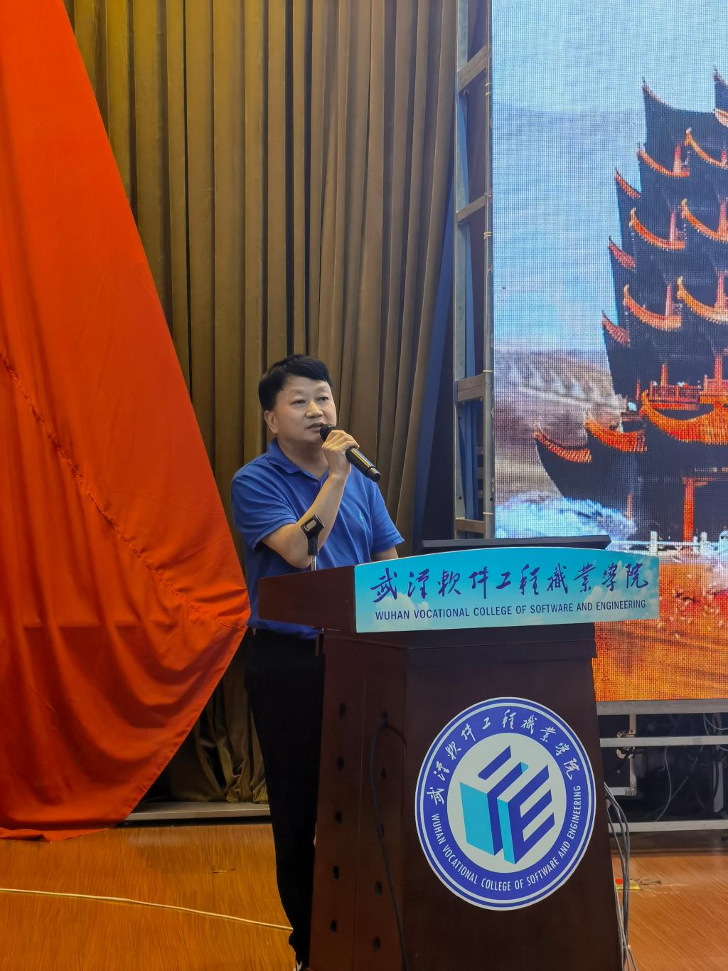 国际学院副院长王麟寄语新生,希望同学们能通过三年努力实现武软梦、本科梦、留学梦,表达了对新生殷切的嘱托和期望。