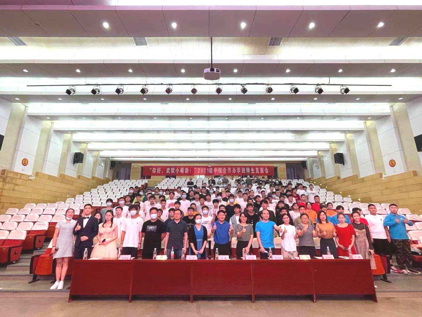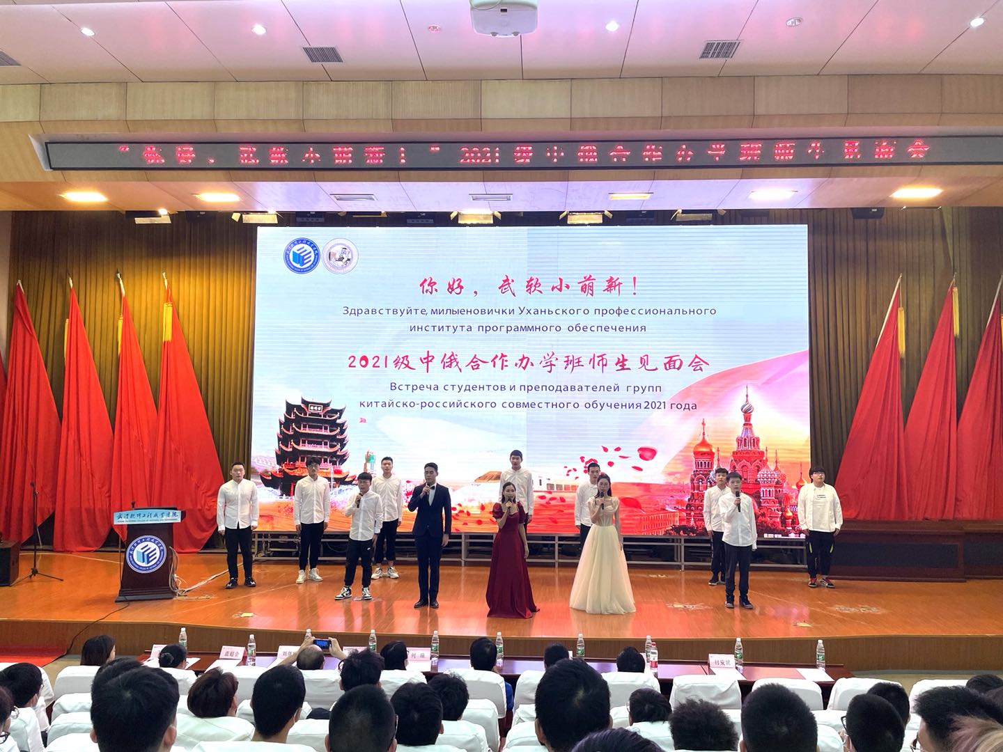 (通讯员 陈怡 段璎津 图 周乐 胡菲 吴开欣)9月14日晚,“你好,武软小萌新!”2021级中俄合作办学班师生见面会在学术楼一号报告厅隆重举行,国际学院、信息学院、电子工程学院、人文学院老师及中俄合作办学两百余名学子出席了活动。