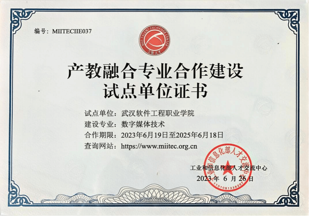(通讯员 段雪琦)11月22日,由工业和信息化部人才交流中心主办的2024年产教融合发展论坛在山东广饶举行,会议公布了“产教融合专业合作建设试点单位”名单和“产教融合优秀案例”获奖名单。我校信息学院数字媒体技术专业成功通过建设验收,成为工信部产教融合专业合作建设试点单位,《校企协同育人 赋能光谷产业》案例获评“产教融合专业合作建设优秀案例”。