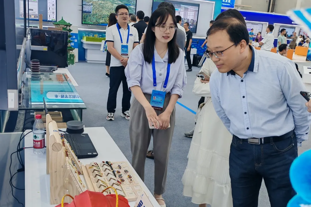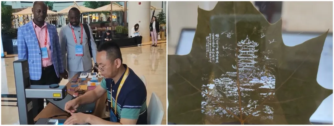 电子工程学院老师李勇、石金发现现场进行的激光雕刻文创项目,成为展会的“人气担当”,很多外国嘉宾在展台前排起了长队,定制专属的参会纪念。多位参展者表示,后续希望与我校开展合作与文创领域的交流。