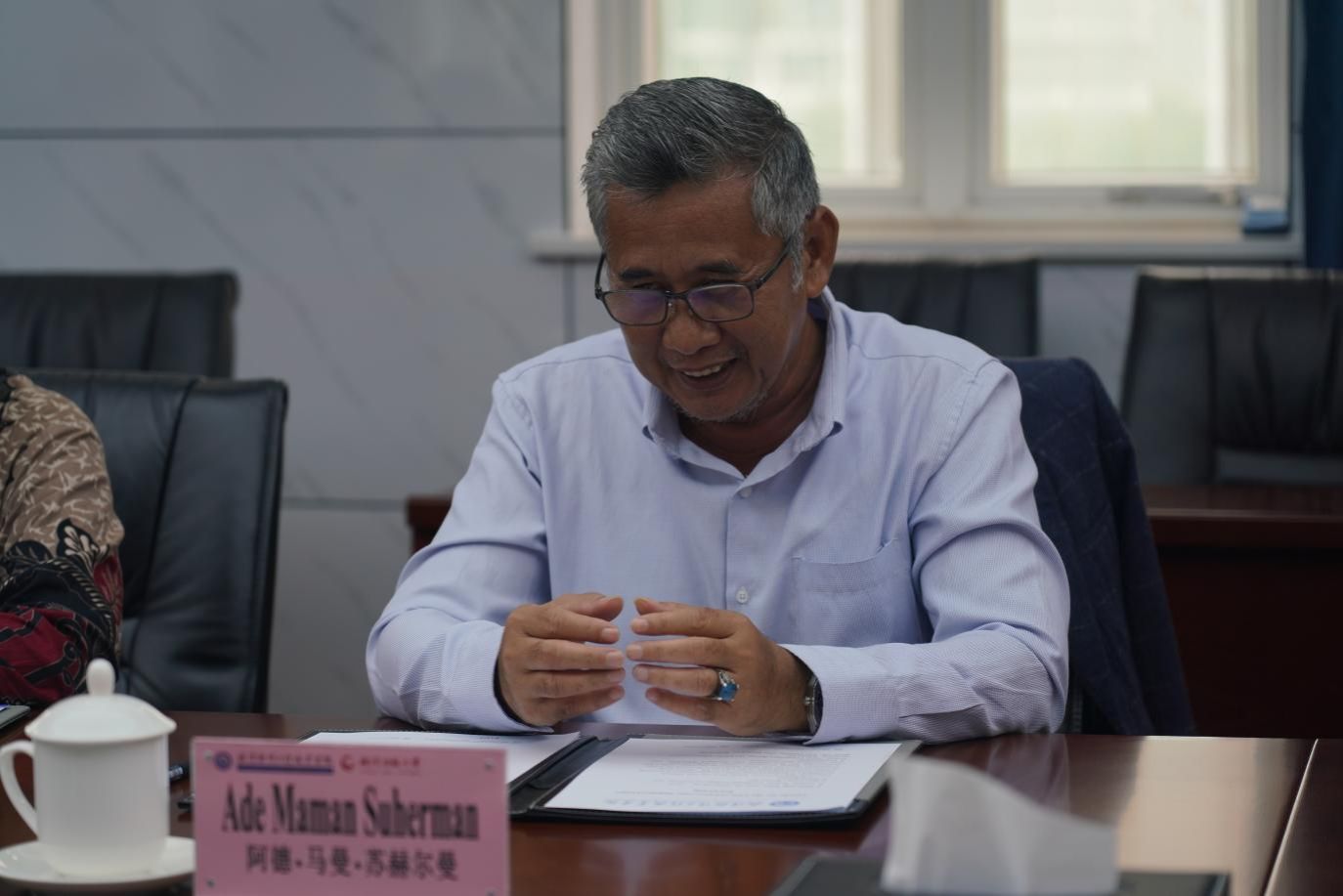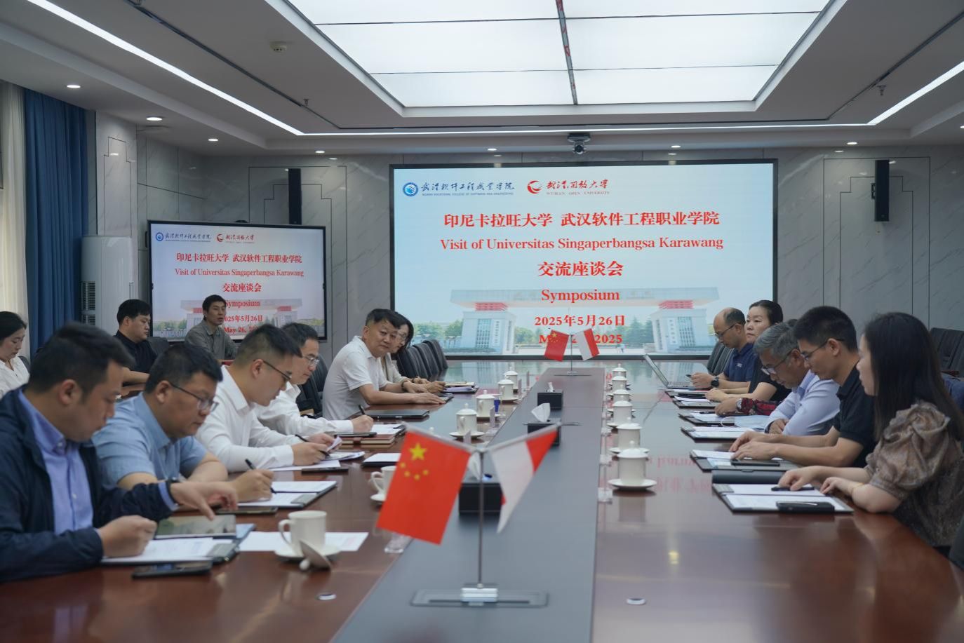 5月26日上午,印尼卡拉旺大学校长阿德・马曼・苏赫尔曼一行2人来校访问,一同访问的还有树根互联股份有限公司教育事业部副总经理陈立峰一行4人。校党委书记蒋兴鹏及相关部门负责人出席座谈会,会议由国际学院院长王麟主持。