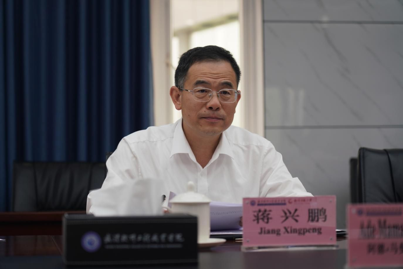 蒋兴鹏对阿德・马曼・苏赫尔曼一行的到来致以热烈欢迎,并详细介绍学校办学特色。他强调,“在中印尼两国友好合作的良好背景下,基于两校在职业教育领域的共同追求,我们热切希望与贵校在工业数智化人才 培养、跨境技术培训、专业资源共建、师生交流等多方面展开深入探讨,共同构建“技术互通、标准互认、人才互育”的合作模式,为中印尼职业教育交流发展注入新动能。”