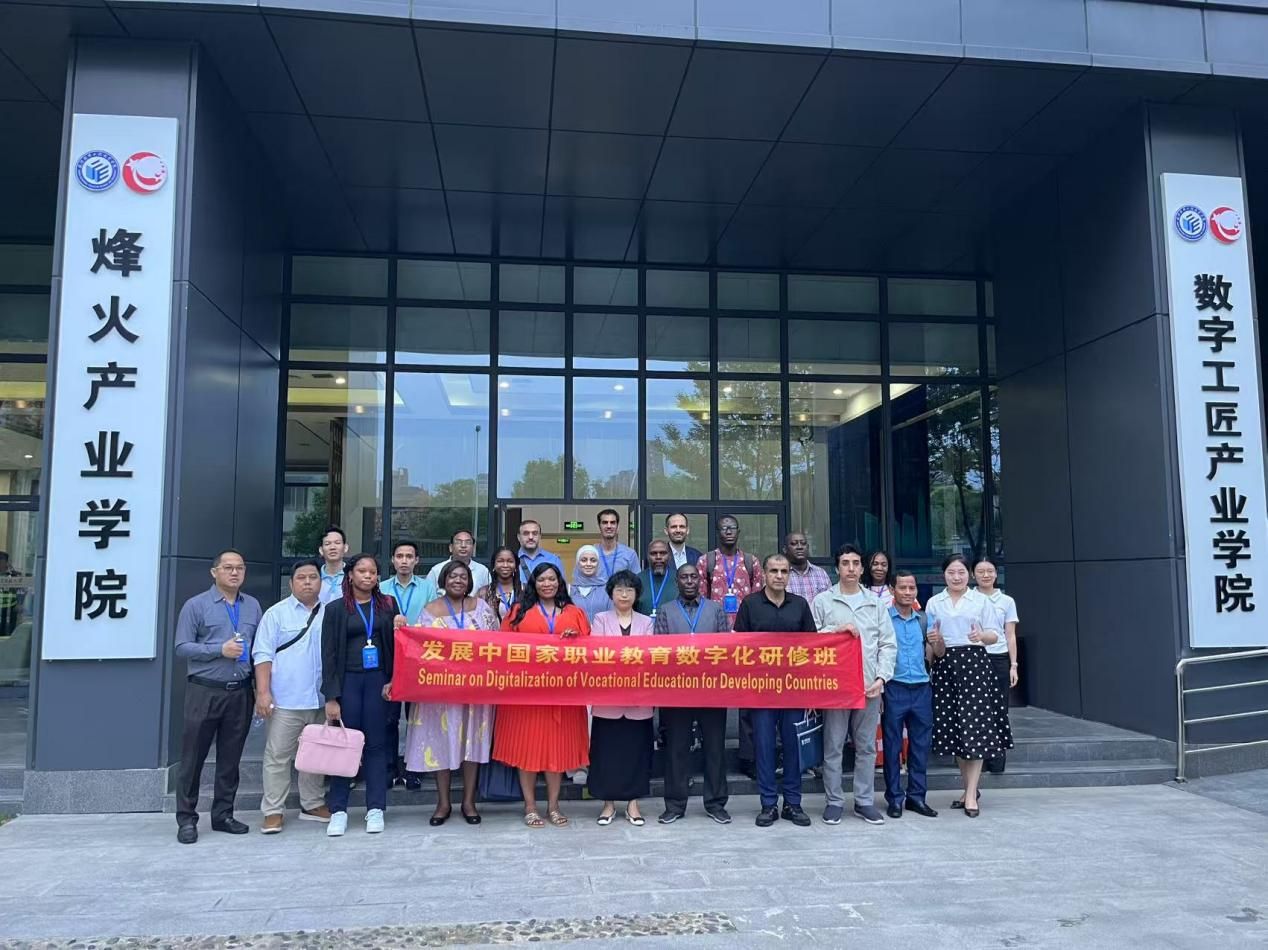 “发展中国家职业教育数字化研修班”全体成员在双创大楼前合影