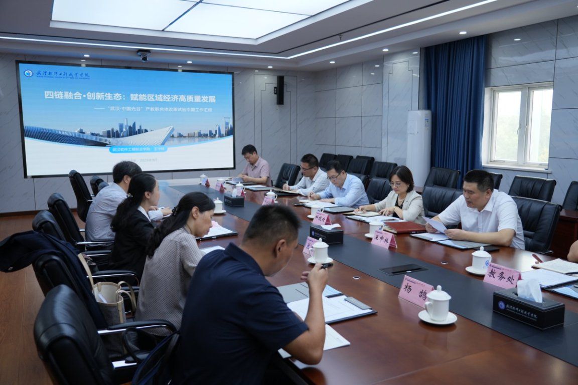 调研期间,专家组通过实地考察、听取汇报、查阅资料和座谈交流等方式,全面了解学校在“武汉·中国光谷”产教联合体建设方面的实践探索与阶段成效。王中林副校长代表学校作专题汇报,从“四个合作”和“五金建设”等方面系统介绍了联合体在治理机制、人才培养、技术服务和区域贡献等方面的创新做法与突出成果。