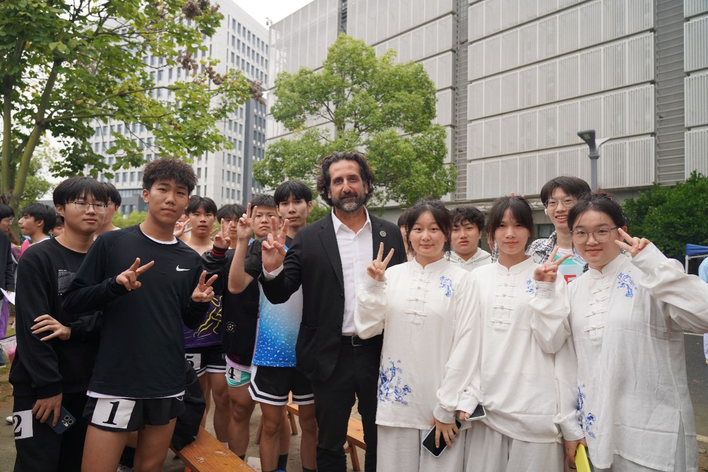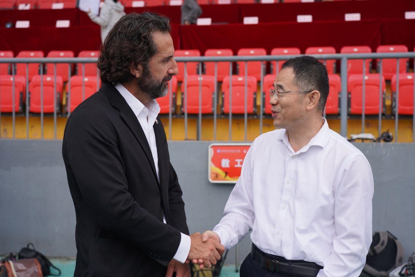 校党委书记蒋兴鹏与前来观摩运动会的戈麦斯亲切交流