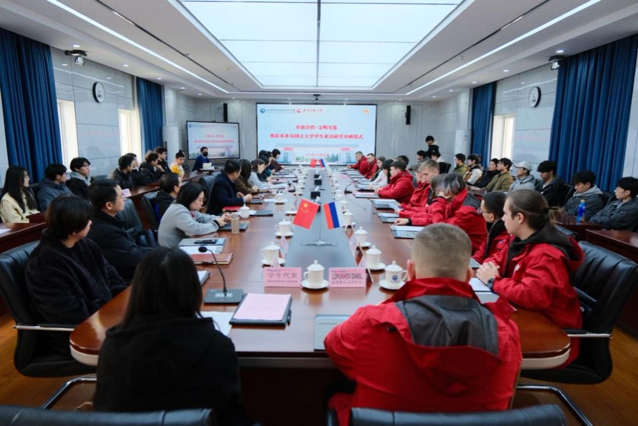 (通讯员:卢海燕)冬韵荆楚迎远客,中俄青年话相知。2025年12月15日上午,“开放合作·文明互鉴——弗拉基米尔国立大学学生来汉研学活动”开班仪式在武汉软件工程职业学院行政楼三楼大会议室隆重举行。武汉软件工程职业学院副校长孙美华及党政办公室(外事处、审计处)、国际学院、信息学院、电子工程学院、文化旅游学院、艺术与传媒学院、体育学院、通识学院负责人、教师代表和15名俄罗斯研学团成员、中俄合作办学项目学生代表共同出席仪式。仪式由国际学院(合作交流中心)院长张莉红主持。