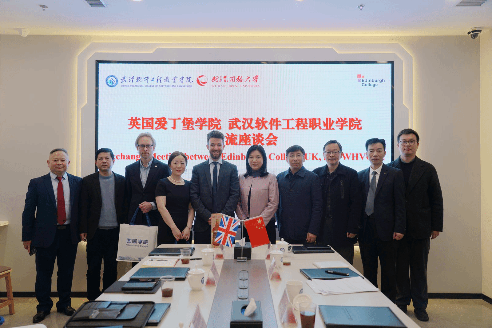 座谈会最后,双方互赠礼品并合影留念,为本次交流画上圆满句号。此次英国爱丁堡学院代表团的到访,为两校搭建了深度交流的桥梁,进一步增进了双方的相互了解,为后续开展多元化、深层次的国际教育合作奠定了坚实基础,也将为中英两国教育交流与民心相通注入新活力。